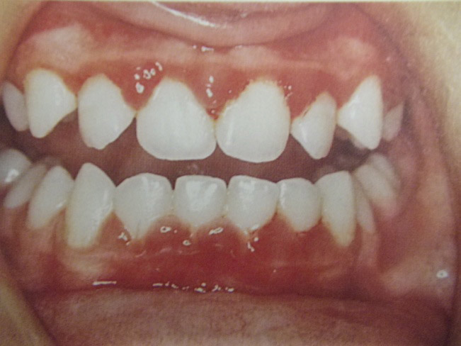 - Εκδηλώνεται με διόγκωση και ερυθρότητα των ούλων γύρω από τα δόντια.